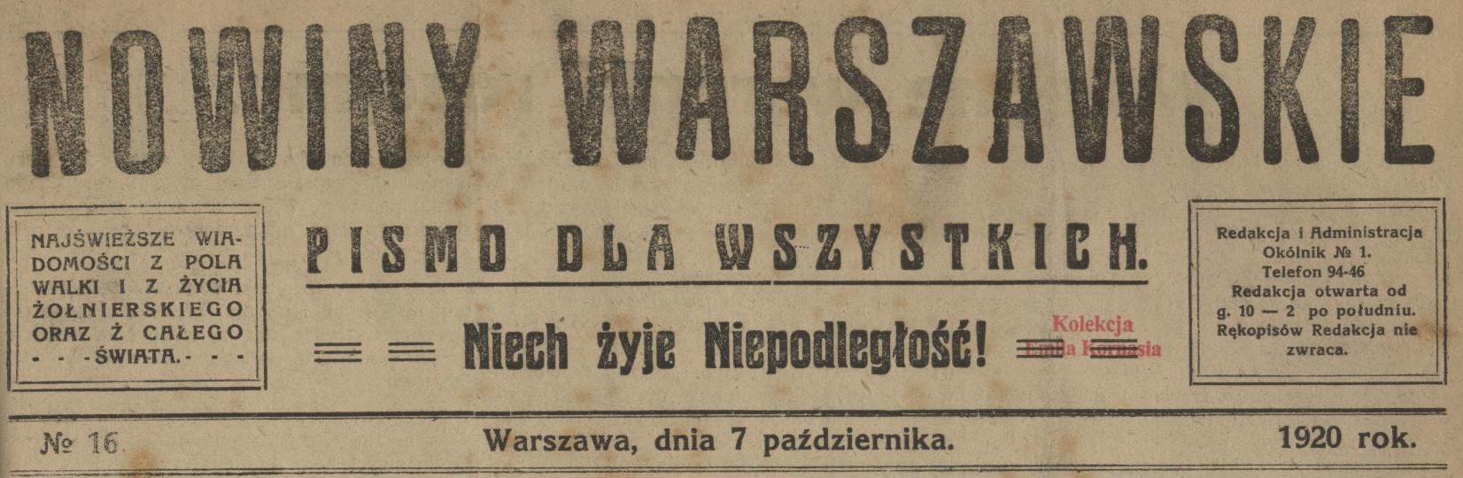 1920, nr 5-23 [Nowiny Warszawskie]