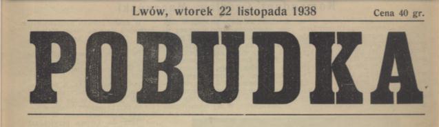 Pobudka : Lwów, wtorek 22 listopada 1938. - Lwów : Stanisław Ostrowski, 1938 (Lwów : Pierwsza Związkowa Drukarnia). - 35 cm.