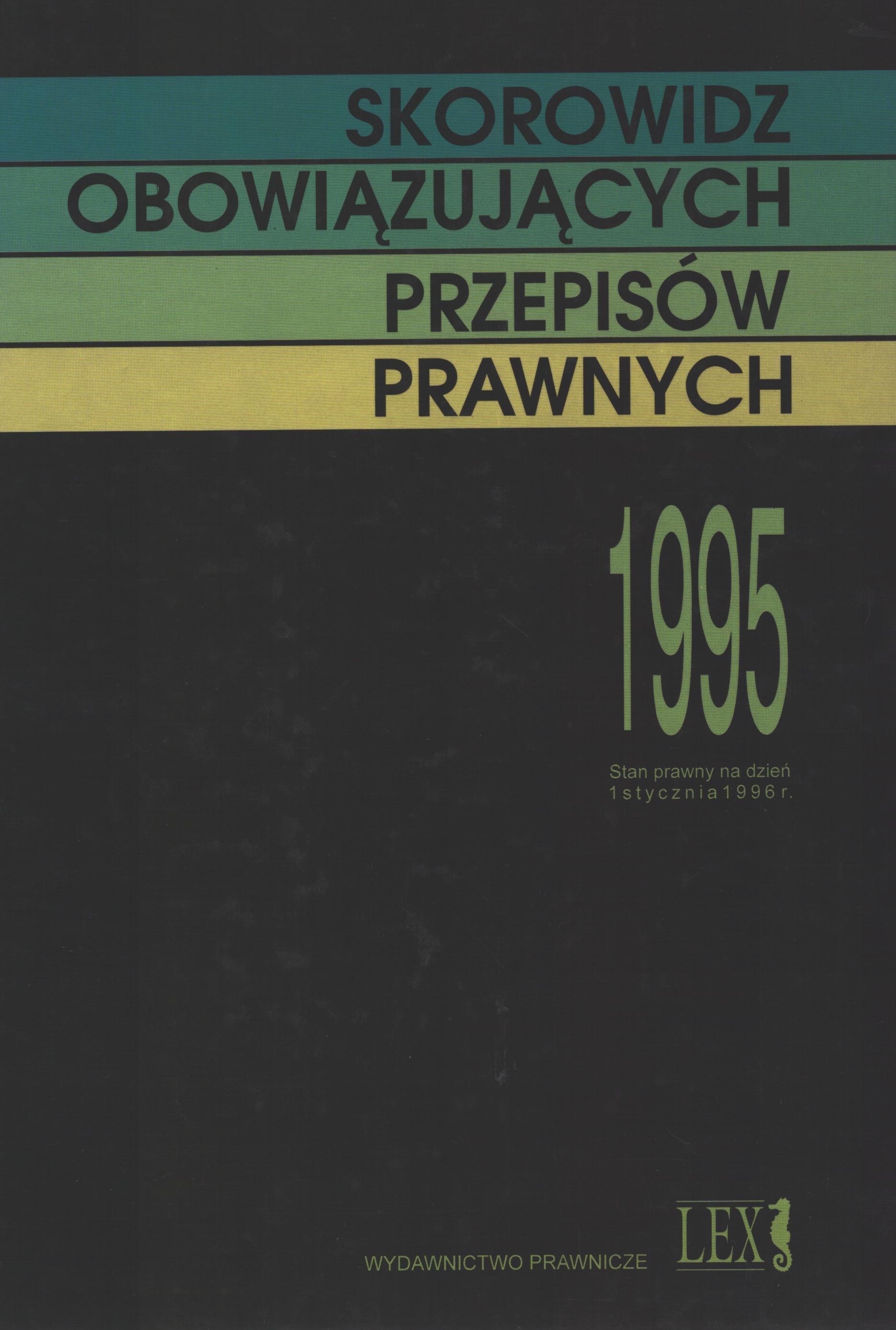 Skorowidz obowiązujących przepisów prawnych : 1995. - Stan prawny na dzień 1 stycznia 1996 r. - Gdańsk : "Lex", 1996. - 1171 s. ; 24 cm.