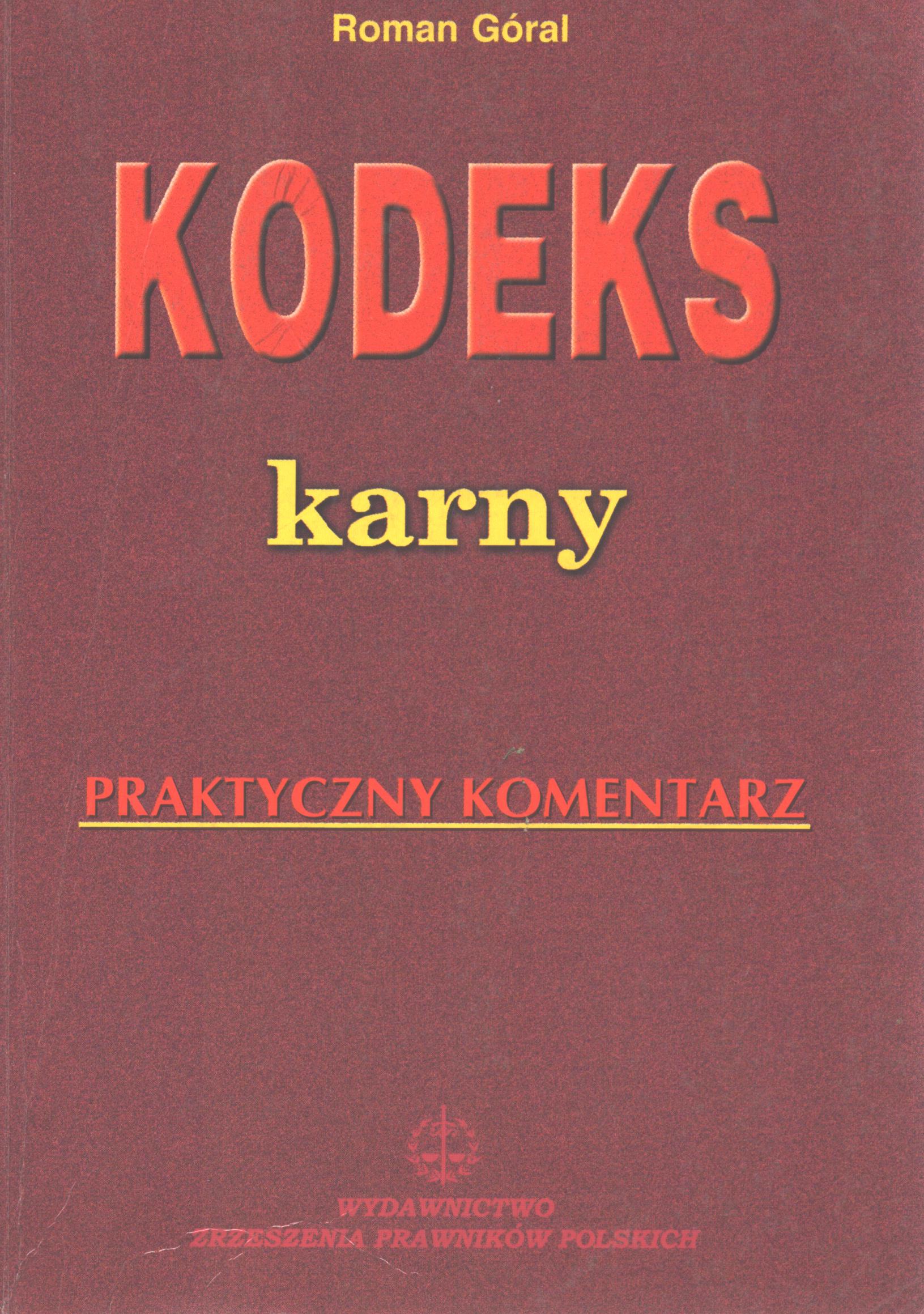 Kodeks karny : praktyczny komentarz / Roman Góral. - Wyd.2 przejrz.,uaktual.i posz. - Warszawa : Wydaw. Zrzeszenia Prawników Polskich, 1996. - 423 s. ; 20 cm.