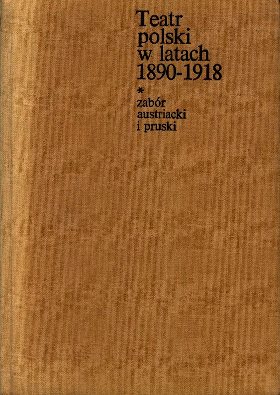 Teatr polski w latach 1890-1918 : zabór austriacki i pruski / Polska Akademia Nauk. Instytut Sztuki. - Warszawa : Państwowe Wydawnictwo Naukowe, 1987 (Warszawa : DRP). - 495, [1] strona : faksymile, fotografie, portrety ; 21 cm.