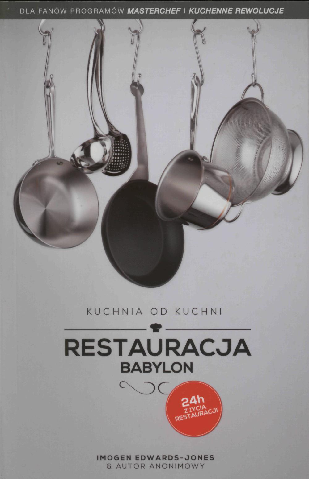 Imogen Edwards-Jones zabiera nas do świata profesjonalnych restauratorów. Wtajemnicza w kulisy prowadzenia biznesu w słodko-gorzkim obliczu luksusowej restauracji przyprawionym pikantnymi szczegółami. Czy przymknąłbyś oko na zażywanie narkotyków przez pracowników, wiedząc, że wówczas lepiej pracują? Czy manipulowałbyś komentarzami na stronach internetowych, by zatuszować negatywne opinie i utrzymać zdobytą niedawno gwiazdkę Michelin? Czy kupowałbyś opinie dziennikarzy? Przeczytaj Restaurację Babylon i dowiedz się, jakie triki się stosuje, aby utrzymać opinie o restauracji na najwyższym poziomie. Dosadnie, przekornie, ale na pewno prawdziwie Autorka pokazała kwintesencję tej branży, konsultując się z anonimowymi właścicielami restauracji.