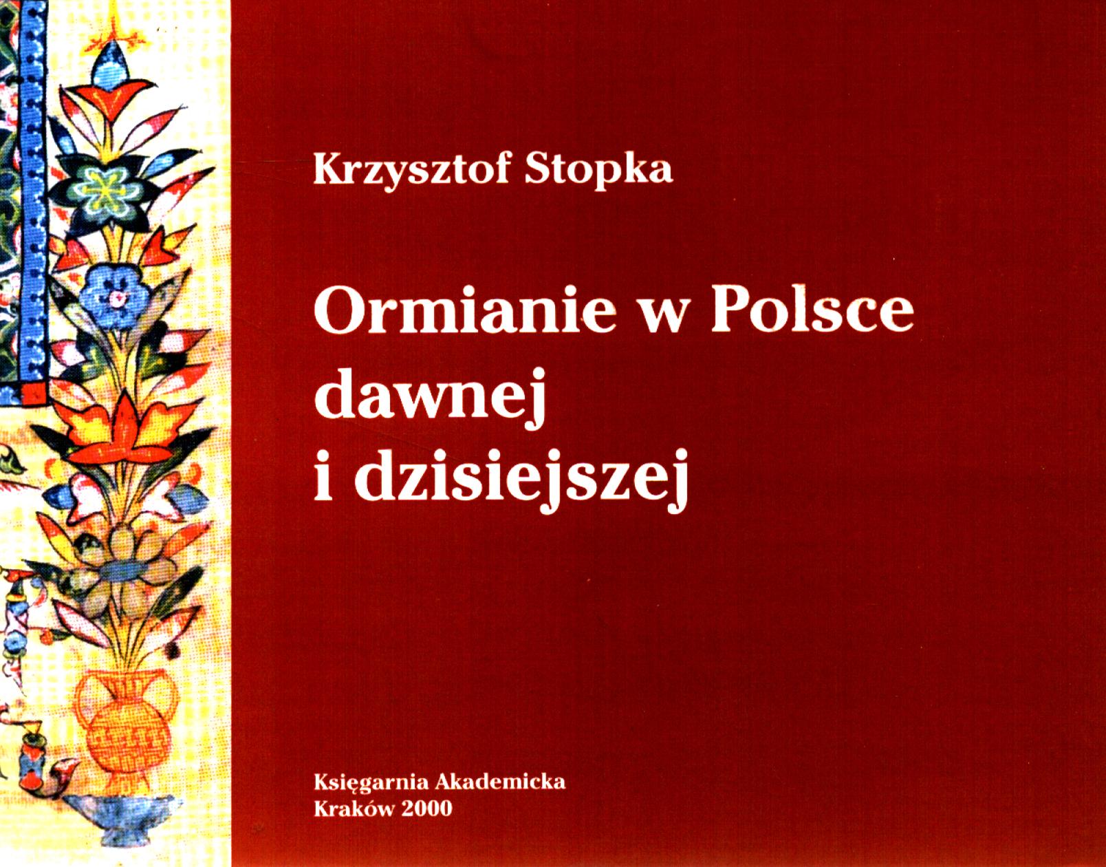 Ormianie w Polsce dawnej i dzisiejszej / Krzysztof Stopka. - Kraków : "Księgarnia Akademicka", 2000. - 174, [2] s., [16] s. tabl. : il. (w tym kolor.), mapy ; 17 x 21 cm.