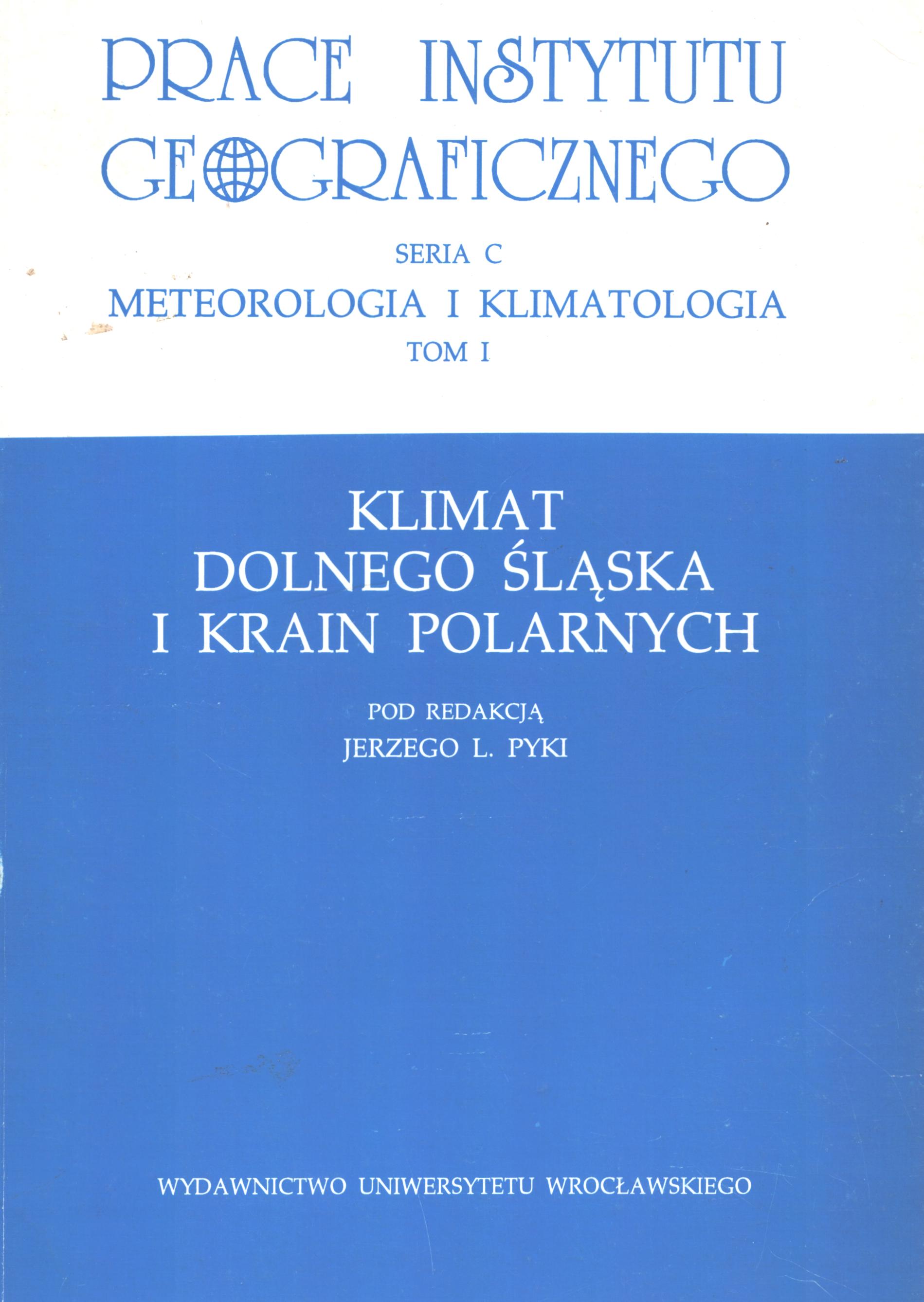 Klimat Dolnego Śląska i krain polarnych / red. Jerzy L. Pyka. - Wrocław : Wydaw. UW, 1994. - 130 s., [9] s. tabl. : fot., mapy, wykr. ; 24 cm.