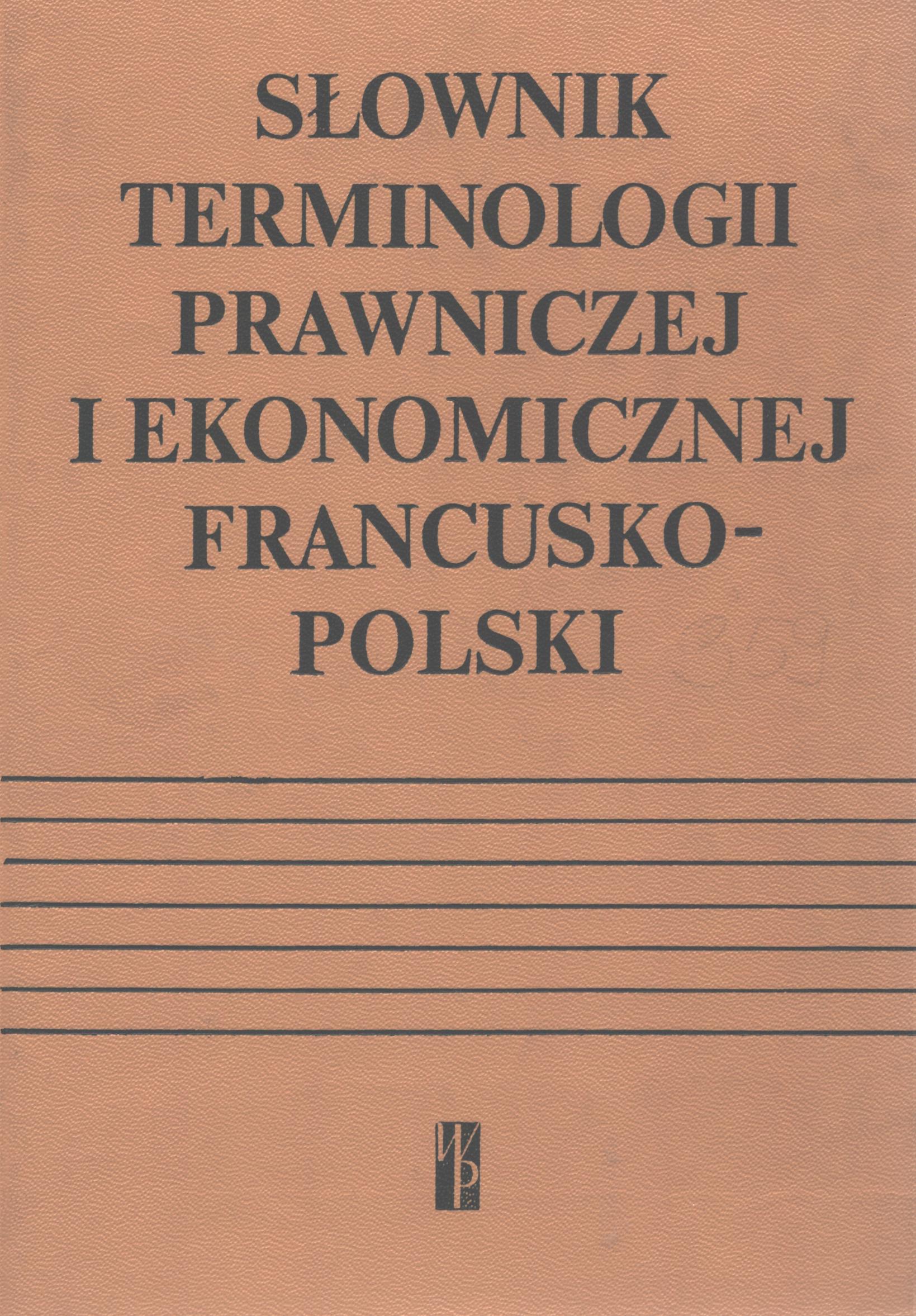 Tyt. równoległy: Dictionnaire de la terminologie juridique et economique français-polonais