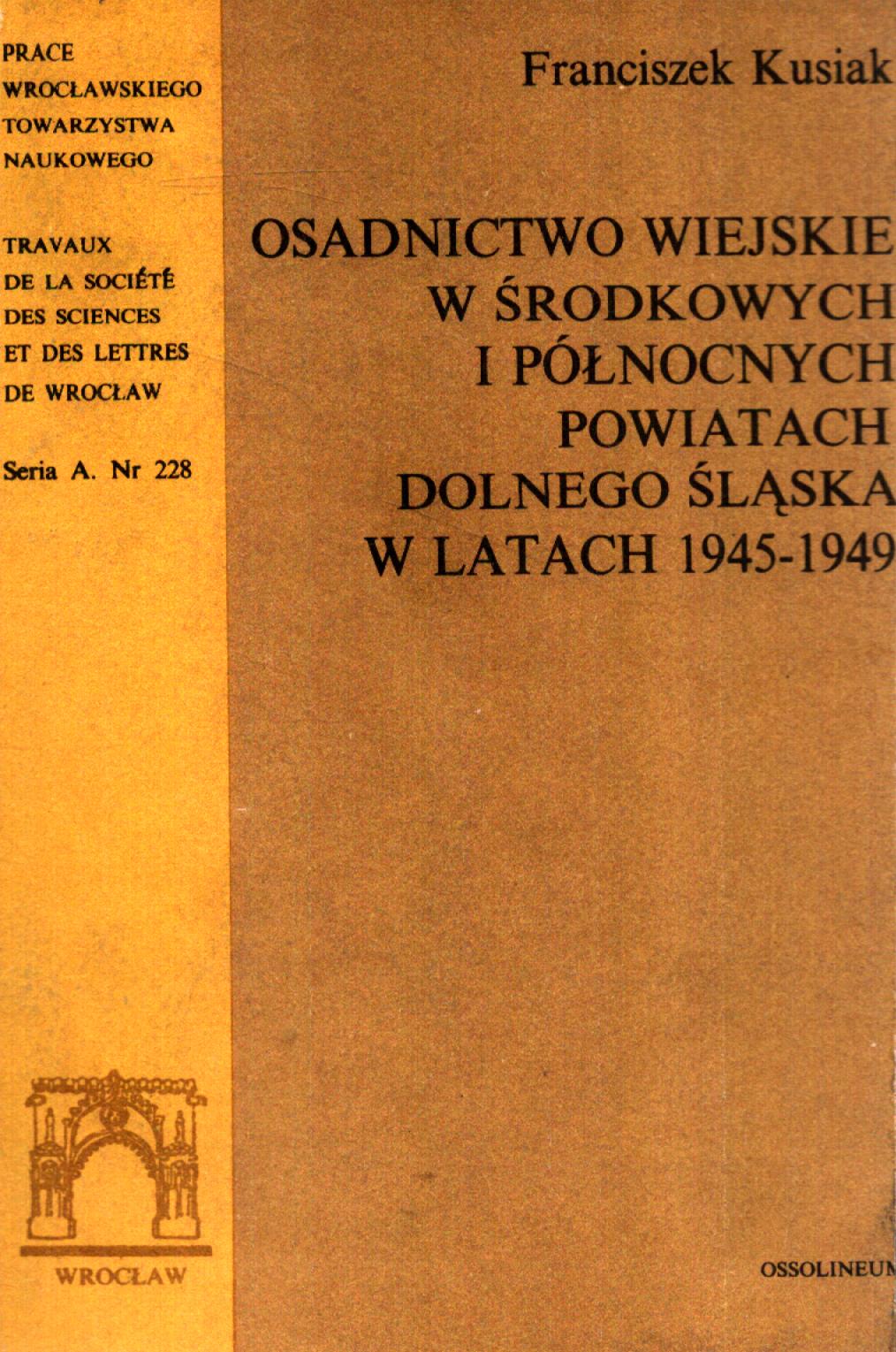 (Prace Wrocławskiego Towarzystwa Naukowego. Seria A = Travaux de la Société des sciences et des lettres de Wrocław, ISSN 0084-3016 ; nr 228)