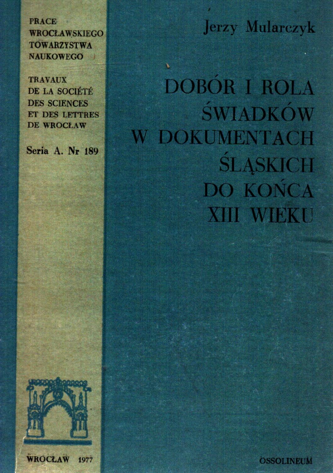 (Prace Wrocławskiego Towarzystwa Naukowego = Travaux de la Société des Sciences et des Lettres de Wrocław. Seria A ; nr 189)