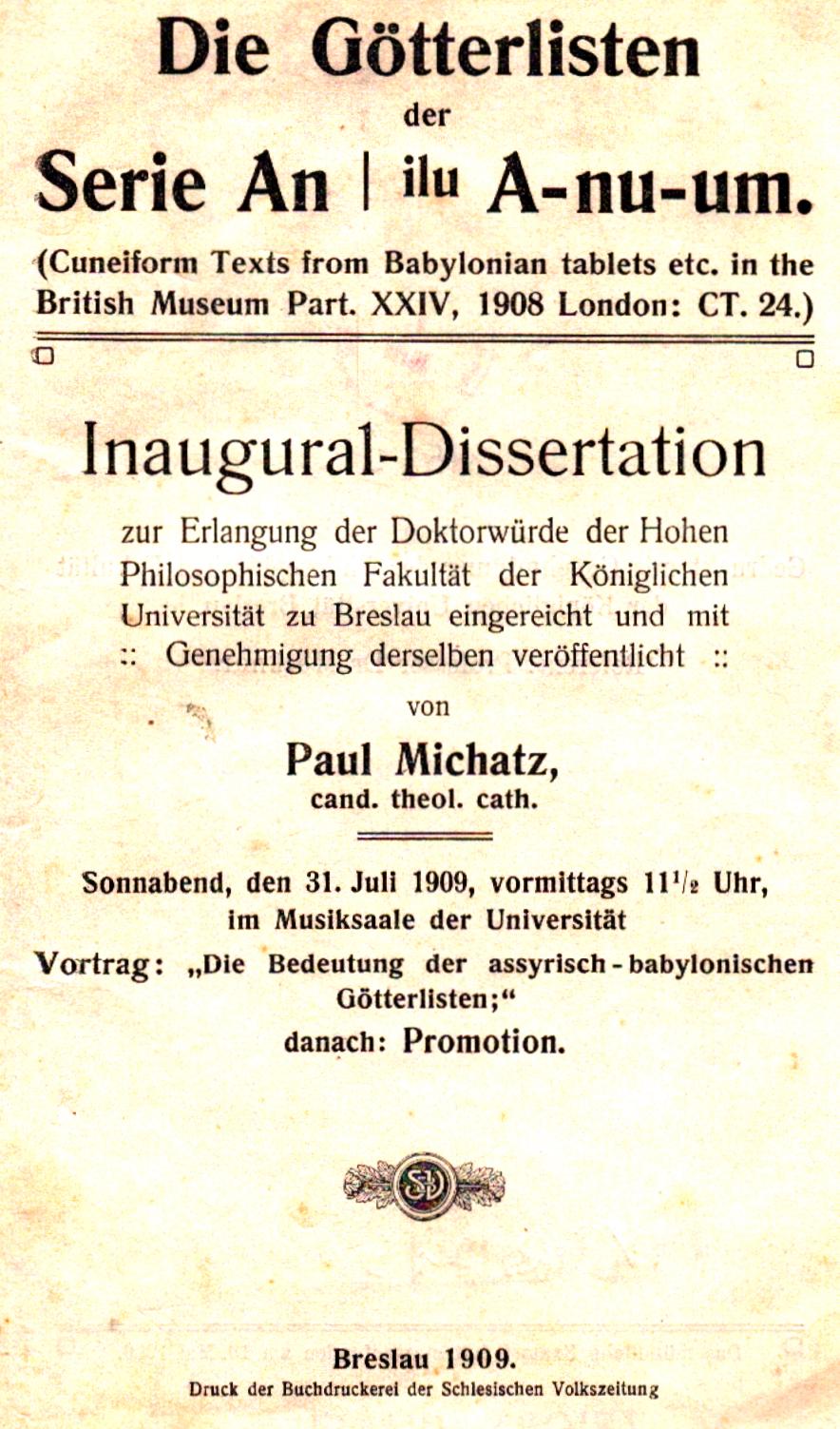 Inaugural-Dissertation zur Erlangung der Doktorwürde der Hohen Philosophischen Fakultät der Königlichen Universität zu Breslau ...