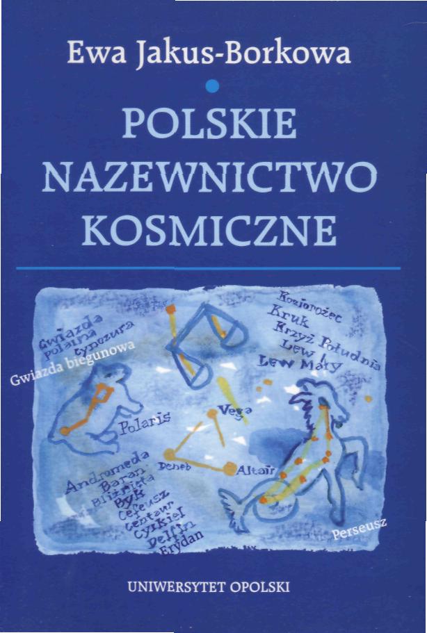 Przedmiotem monografii Polskie nazewnictwo kosmiczne jest analiza typów semantycznych i strukturalnych nazewnictwa związanego z Kosmosem. Badaniami objęte zostały zarówno nazwy rodzime: oficjalne oraz ludowe, jak i globalne, obce, zapożyczone do polskiego systemu językowego i w nim funkcjonujące. Bazę materiałową stanowi nazewnictwo zgromadzone z prac astronomicznych i etnograficznych. Rozpada się ono na dwie podstawowe grupy, które rzutują na dwudzielny układ książki. W pierwszej części omówione są kosmonimy, czyli nazwy obiektów naturalnych, znajdujących się w Układzie Słonecznym, w drugiej - chrematonimykosmiczne, tzn. nazwy określające - zlokalizowane na planecie Ziemi lub w przestworzach - instrumentaria skonstruowane przez człowieka do badania Wszechświata.