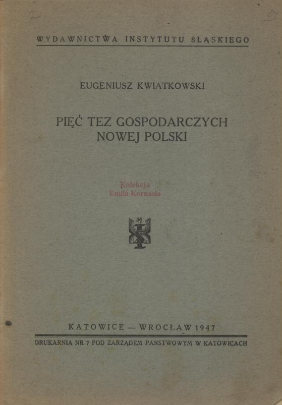 Pięć tez gospodarczych nowej Polski / Eugeniusz Kwiatkowski. - Katowice ; Wrocław : [s.n.], 1947 (Katowice : Drukarnia Nr 7) - 32 s. ; 21 cm.