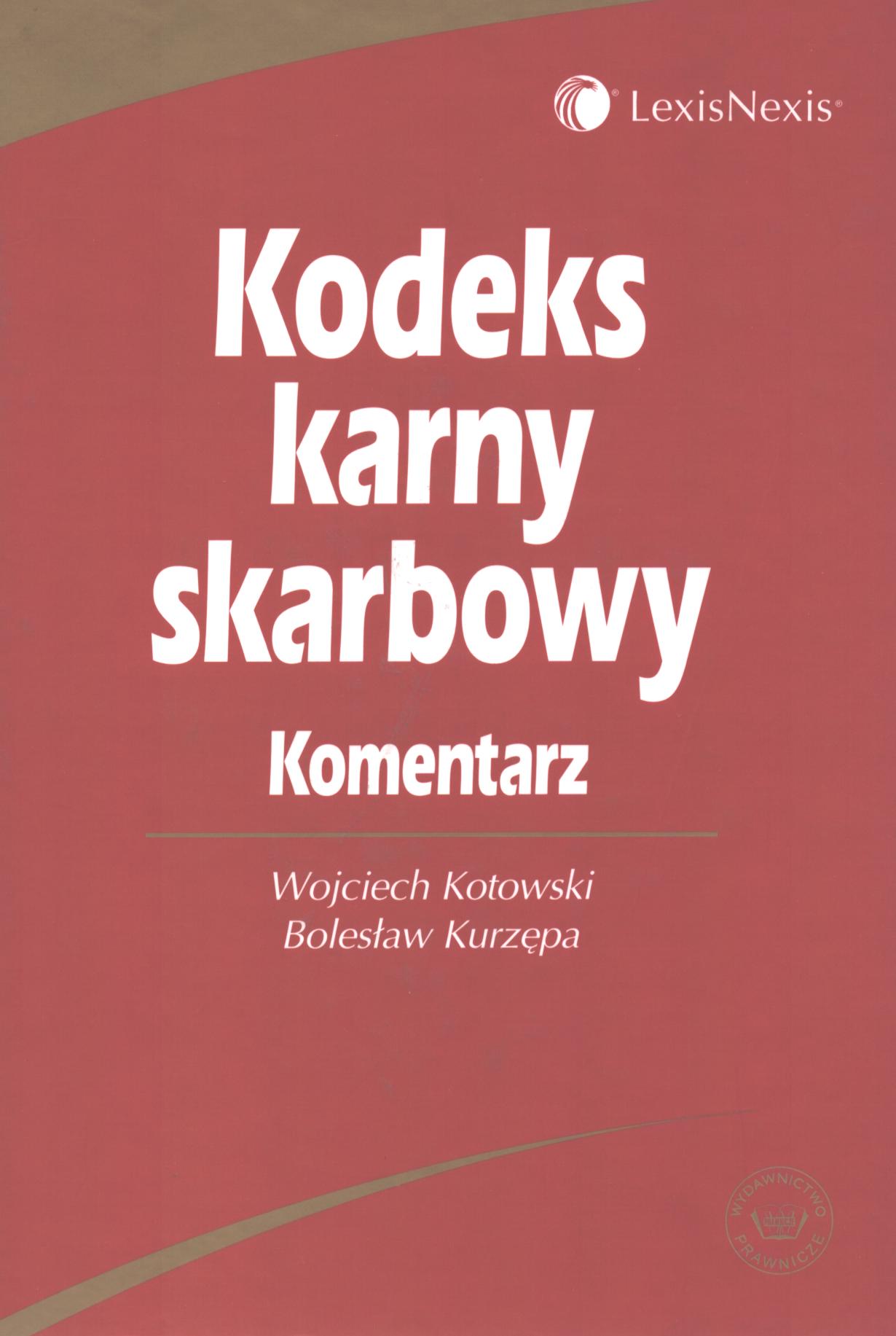 Kodeks karny skarbowy : komentarz / Wojciech Kotowski, Bolesław Kurzępa. - Stan prawny na 15 listopada 2005 roku, (uwzględnia zmiany wchodzące w życie 1 stycznia 2006 roku). - Warszawa : Wydawnictwo Prawnicze LexisNexis, 2006. - 501, [3] s. ; 25 cm.