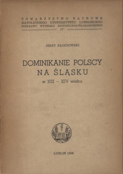 Dominikanie polscy na Śląsku w XIII-XIV wieku / Jerzy Kłoczowski. - Lublin : Towarzystwo Naukowe Katolickiego Uniwersytetu Lubelskiego, 1956. - XXVII, 356 stron, [1] karta tablic złożona : ilustracje ; 21 cm.