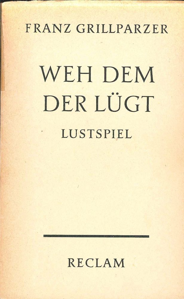 Weh dem, der lügt! ist der Titel eines Lustspiels von Franz Grillparzer, das am 6. März 1838 im Wiener Burgtheater uraufgeführt wurde. Grillparzer entnahm den Stoff der Historia Francorum von Gregor von Tours. Das Stück löste nach der Aufführung einen Skandal aus, der Grillparzer bewog, sich von der Öffentlichkeit zurückzuziehen. Von der Nachwelt wird Weh dem, der lügt! jedoch als eines der klassischen deutschen Lustspiele angesehen. In gedruckter Ausgabe erschien das Stück im Jahre 1840. Bei Weh dem, der lügt handelt es sich um ein Lustspiel, welches in der Zeit der Merowinger spielt. Die komische Handlung basiert auf dem Versprechen des Küchenjungen Leon, die Rettung des von den Germanen gefangenen Neffen des Bischofs Gregor von Chalons durchzuführen, ohne ein einziges Mal zu lügen. Es erinnert an die Ausstrahlung des österreichischen Volkstheaters und an die Tradition des Barock. Das Stück wurde zuerst falsch verstanden, weil Leon sagen darf, was er will. Durch seine kecke Art wird er nicht ernst genommen, auch wenn er die Wahrheit spricht. Wie der Großteil der Dramen Grillparzers ist auch Weh dem, der lügt! in fünffüßigen Jamben geschrieben. (Quelle: Wikipedia.de)