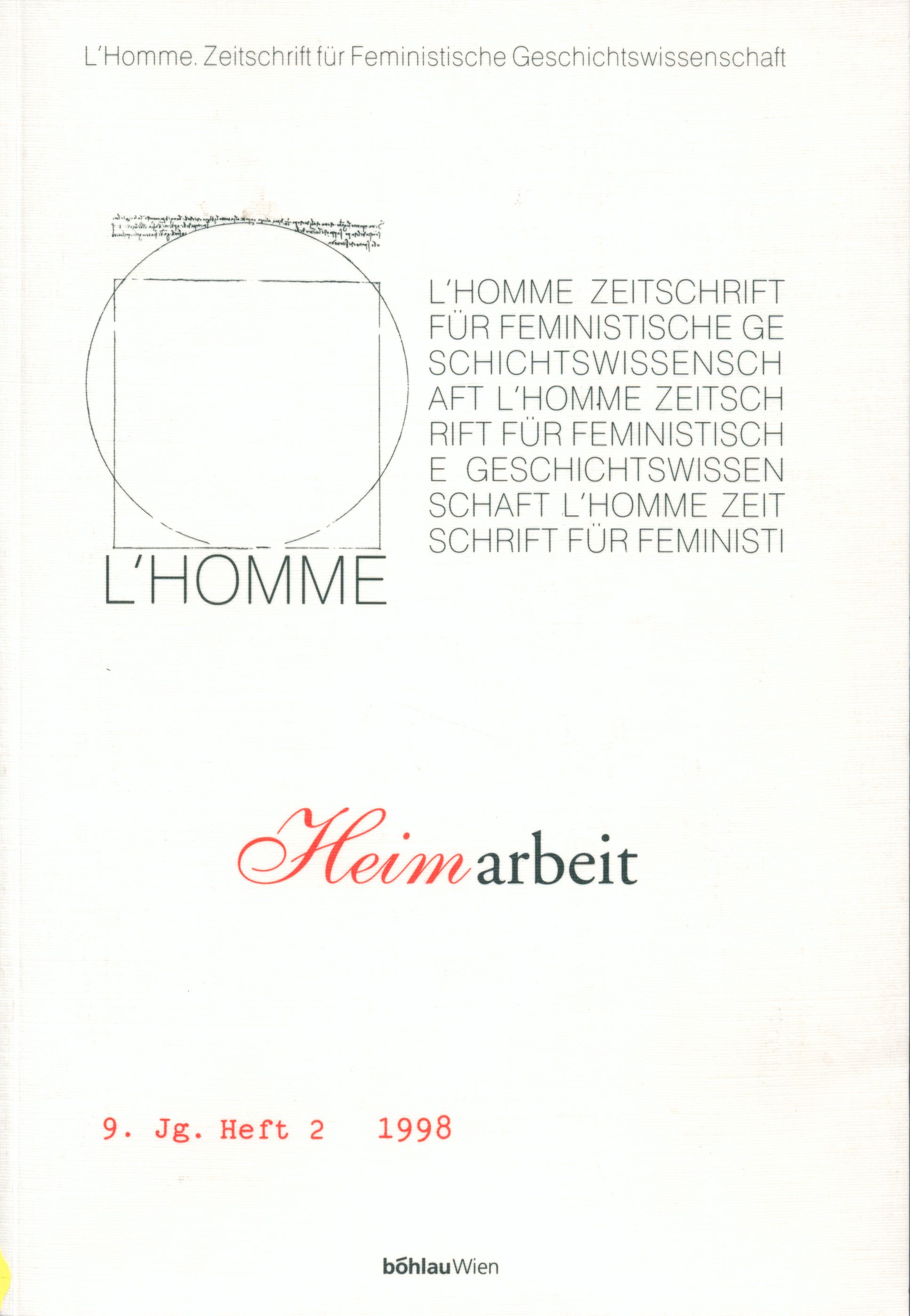 (L'Homme : Zeitschrift für Feministische Geschichtswissenschaft ; 9.Jg.H.2)