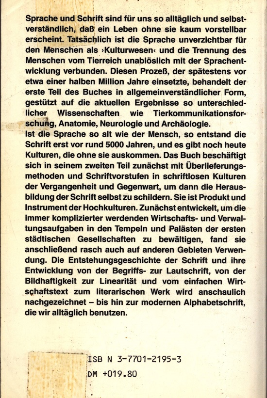 Ist die Sprache so alt wie der Mensch, so entstand die Schrift erst vor rund 5000 Jahren, und es gibt noch heute Kulturen, die ohne sie auskommen.