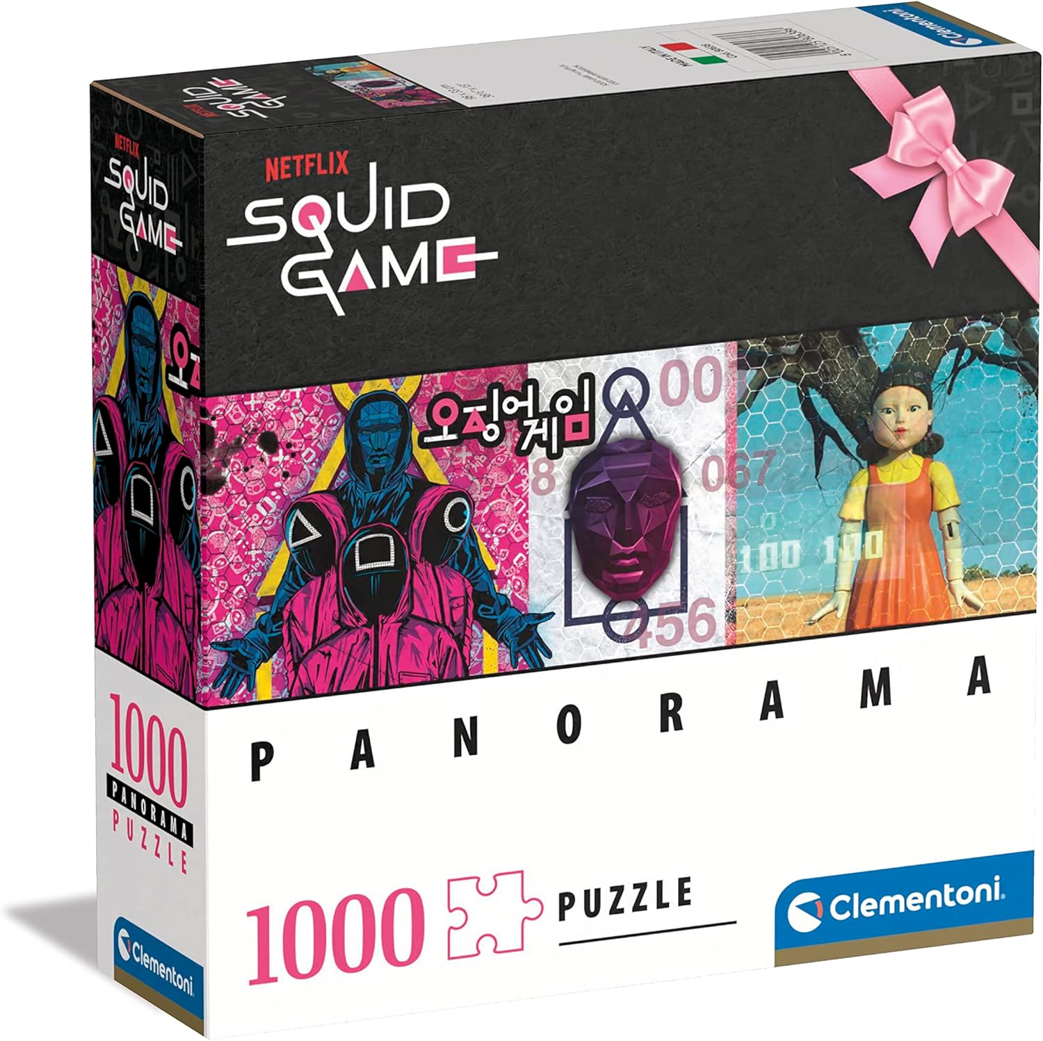 Panorama Squid Game [Gra] : 1000 puzzle. - [Recanati] : Clementoni, [2025]. - 1 pudełko (puzzle 1000 elementów) : ilustracje kolorowe ; 20x20x6 cm.