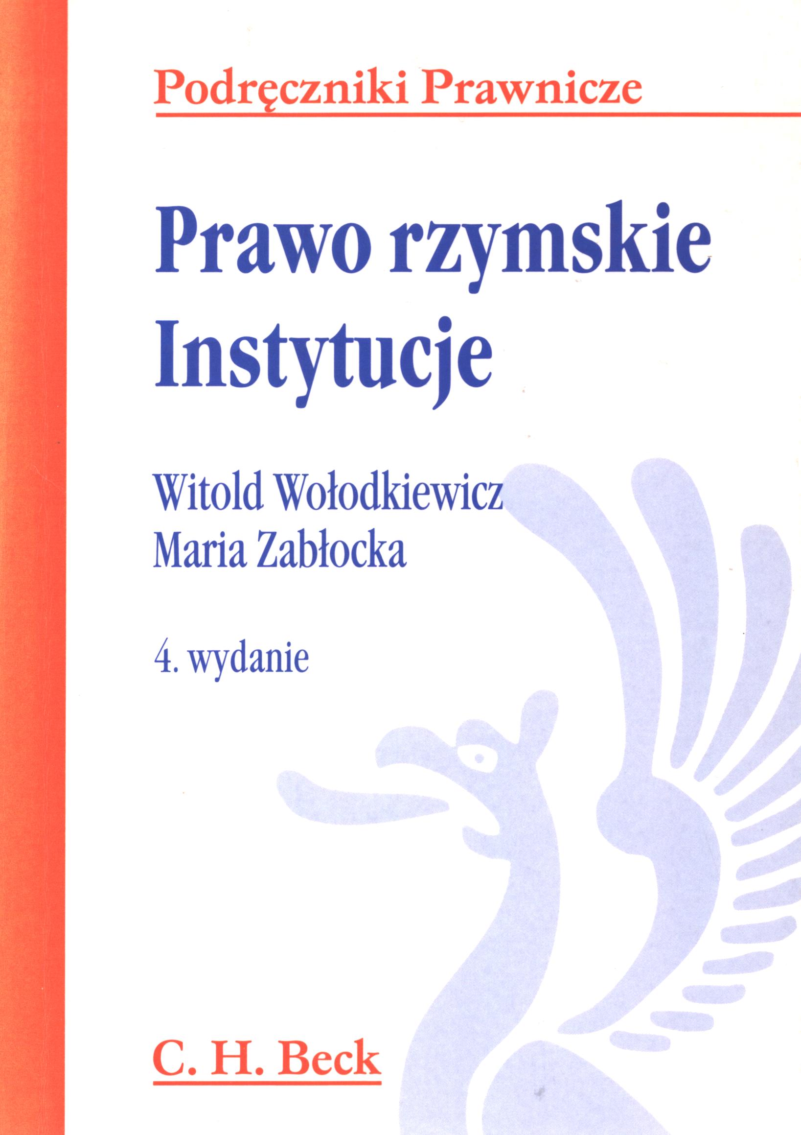 Prawo rzymskie : instytucje / Witold Wołodkiewicz, Maria Zabłocka. - Wyd. 4 popr. i rozszerz. - Warszawa : Wydaw. C.H.Beck, 2005 - XXIV, 395 s. ; 21 cm.