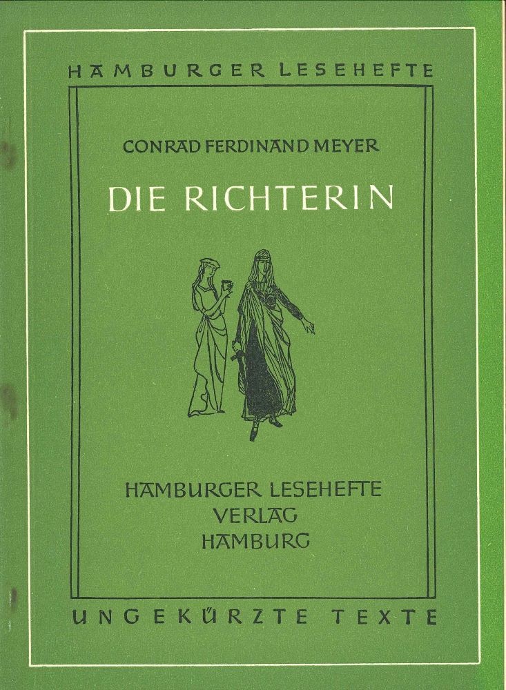 Die Richterin ist eine Novelle von Conrad Ferdinand Meyer und wurde 1885 veröffentlicht. Graciosus (Gnadenreich) ist im Auftrag von Judicatrix Stemma, der Richterin, nach Rom gekommen um Kaiser Karl den Großen um Hilfe im Kampf gegen die Langobarden zu bitten. Er soll auch den Stiefsohn der Richterin, Wulfrin Wulf, nach Rätien holen, weil sich Stemma für den plötzlichen Tod seines Vaters, Comes Wulf, rechtfertigen will. Wulfrin macht sich auf den Weg nach Rätien, gerät aber in einen Hinterhalt der Langobarden. Palma, die Tochter der Richterin, kauft Wulfrin, ohne zu zögern, frei, weil sie sich so auf seine Ankunft freut. Die Richterin empfängt Wulfrin auf ihrer Burg Malmort. Er soll sie verurteilen oder freisprechen vom Tod seines Vaters. Wulfrin ist überzeugt von ihrer Unschuld und spricht Stemma vor dem versammelten Volk frei. Damit ist diese Angelegenheit scheinbar für die Richterin erledigt. Sie nimmt Wulfrin das Hifthorn, das er von seinem Vater geerbt hat, ab und schleudert es in den Abgrund. Die Richterin hat noch eine zweite Aufgabe für Wulfrin: Er soll Palma mit dem Bischofsneffen Gnadenreich verloben. Für diesen Zweck geht das Geschwisterpaar auf eine Wanderung nach Pratum, wo Gnadenreich wohnt. Unterwegs küsst Palma ihren (vermeintlichen) Bruder, was ihn erschaudern lässt. Palma hat sich in Wulfrin verliebt und will ihn am liebsten heiraten; da dies aber einem Inzest gleich käme, wird sie Gnadenreich nehmen. Beim Abendessen auf Pratum kommt es zu einem Streit. Wulfrin schickt Palma sofort nach Hause. In einer Schlucht schleudert er seine geliebte Schwester an einen Felsen und liefert die Leblose bei der Richterin ab. Wulfrin will, dass Stemma ihn wegen sündiger Geschwisterliebe verurteilt; er will erst am Gerichtstag mit Kaiser Karl nach Malmort zurückkommen. In der Nacht begegnet Wulfrin dem Hirtenjungen Gabriel. Der hat Wulfrins Erbe, das Hifthorn, beim Fischen gefunden. Wulfrin bläst hinein und folgt Gabriel hinauf nach Malmort. Er versucht mit seinem Vater am Grab zu reden. Er stößt noch einmal in das Horn und verschwindet wieder. Stemma ist durch den Ton, den sie vernichtet zu haben glaubte, aufgeschreckt worden. Sie stürzt zornig zum Grab ihres Mannes und spricht zu ihm über seinen Tod. Vor 16 Jahren heiratete Stemma gezwungenermaßen den Freund ihres Vaters, Comes Wulf. Sie hatte aber einen Liebhaber namens Peregrin und wurde von ihm schwanger. Der Judex, ihr Vater, erwischte und tötete diesen. Später wurde er selbst erschlagen. Bei der Rückkehr Comes’ vom Rachezug gegen den Mörder seines Schwiegervaters bot die Richterin ihrem Ehemann den Wulfenbecher an, in den sie ein Gift gemischt hatte. Nachdem Comes daraus getrunken hatte, starb er sofort. Stemma schützte ein Gegengift. Palma ist ihrer Mutter nachgeschlichen, hat alles mitbekommen und ist somit zur Zeugin geworden. Am Gerichtstag gesteht die Richterin nunmehr ihre Tat vor dem Volk und dem Kaiser. Wulfrin ist nicht der Bruder von Palma und damit unschuldig. Die Richterin holt ein Fläschchen mit Gift hervor, trinkt es und stirbt. Der Kaiser will wissen, was jetzt mit Palma geschieht. Wulfrin soll mit ihm in den Krieg ziehen, und wenn er danach zurückkommt, wird er Palma heiraten.