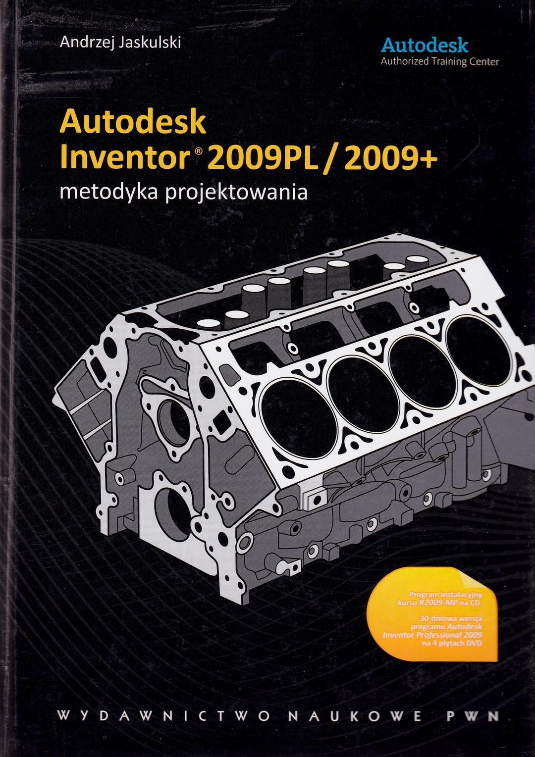 Na okł.: Program instalacyjny kursu R2009-MP na CD. 30-dniowa wersja programu Autodesk Inventor Professional 2009 na 4 płytach DVD.