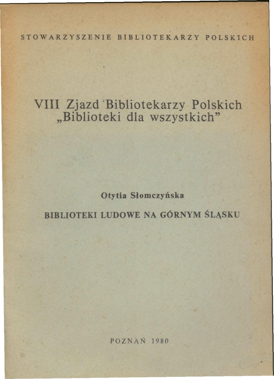 Inny tyt: Ósmy Zjazd Bibliotekarzy Polskich "Biblioteki dla wszystkich"