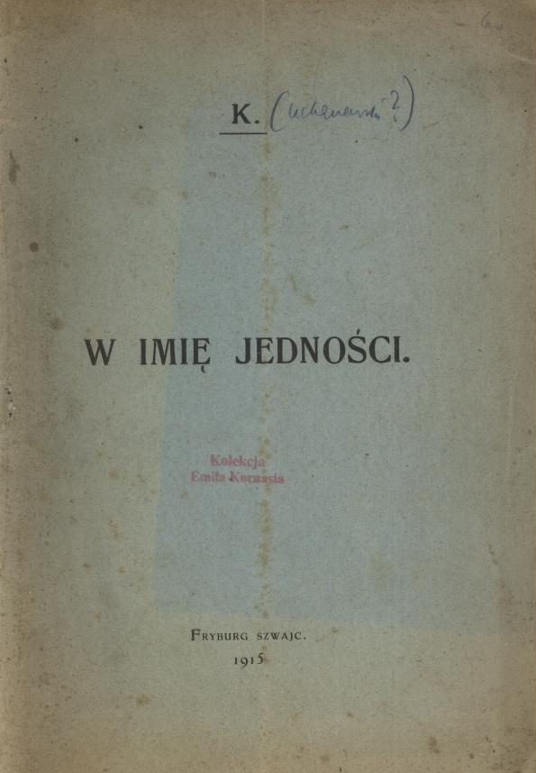 Na s. tyt. krypt. aut. Na okł. nazwa aut. i krypt. Nazwa aut.: Jan Kucharzewski.