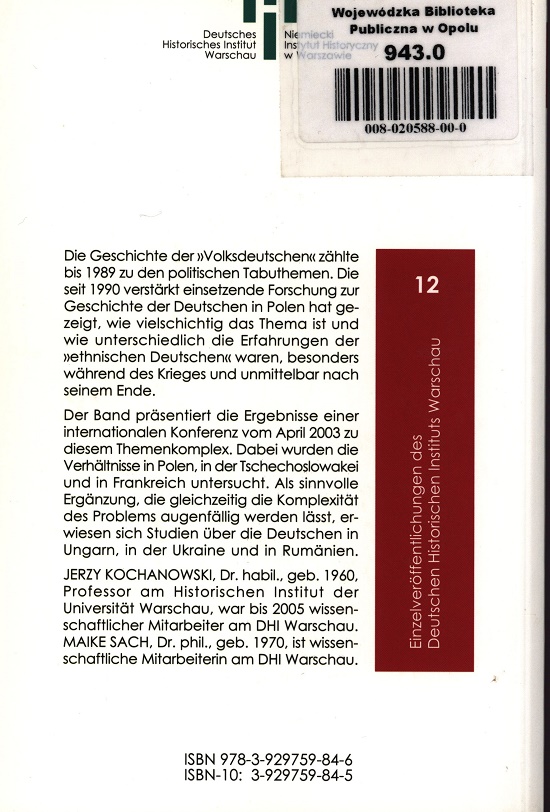 Der Begriff der »Volksdeutschen« gehört bis heute in Polen zu den am negativsten besetzten Begriffen im Zusammenhang mit dem Zweiten Weltkrieg. Bis 1989 zählte dieses Problem zu den politischen Tabuthemen. Die seit den 1990er Jahren verstärkt einsetzende Forschung über die Geschichte der Deutschen in Polen hat gezeigt, wie komplex und vielschichtig das Problem ist und wie unterschiedlich die Erfahrungen der »ethnischen Deutschen« waren, besonders während des Krieges und unmittelbar nach seinem Ende. Um Forschungslücken zu diesem Themenkomplex zu füllen, haben Historiker des DHI Warschau im April 2003 gemeinsam mit dem Haus für deutsch-polnische Zusammenarbeit in Gleiwitz eine internationale Konferenz über die Volksdeutschen organisiert, deren Ergebnisse im vorliegenden Band zusammengefasst sind. Dabei wurden Polen, die Tschechoslowakei und Frankreich als unmittelbare Nachbarn Deutschlands, die jeweils in Grenzstreitigkeiten verwickelt waren und gleichzeitig eine starke deutsche Minderheit aufwiesen, miteinander verglichen. Als sinnvolle Ergänzung erwiesen sich Studien aus Ungarn, der Ukraine, Rumänien und Serbien. JERZY KOCHANOWSKI, Dr. hab., geb. 1960, Historiker an der Universität Warschau, war wissenschaftlicher Mitarbeiter am DHI Warschau. In unserer Reihe Klio in Polen ist sein Werk »In polnischer Gefangenschaft. Deutsche Kriegsgefangene in Polen 1945-1950« erschienen. MAIKE SACH ist Historikerin und war wissenschaftliche Mitarbeiterin am Deutschen Historischen Institut Warschau.
