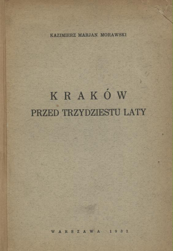 Kraków przed trzydziestu laty / Kazimierz Marjan Morawski. - Warszawa : [s.n.], 1932 (Warszawa : Druk. Kooperacyjna Pracownia Drukarska). - 74, [1] s. ; 21 cm.