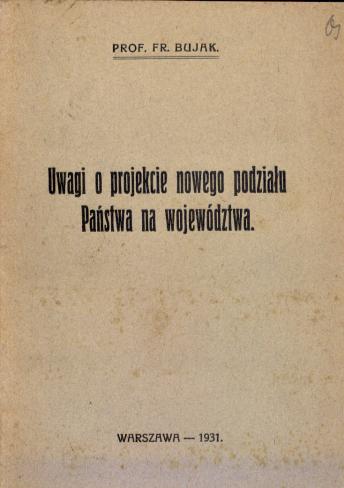 Uwagi o projekcie nowego podziału państwa na województwa / prof. Fr. Bujak. - Warszawa : [s.n.], 1931 (Warszawa : Drukarnia Policyjna). - 36 s. ; 17 cm.
