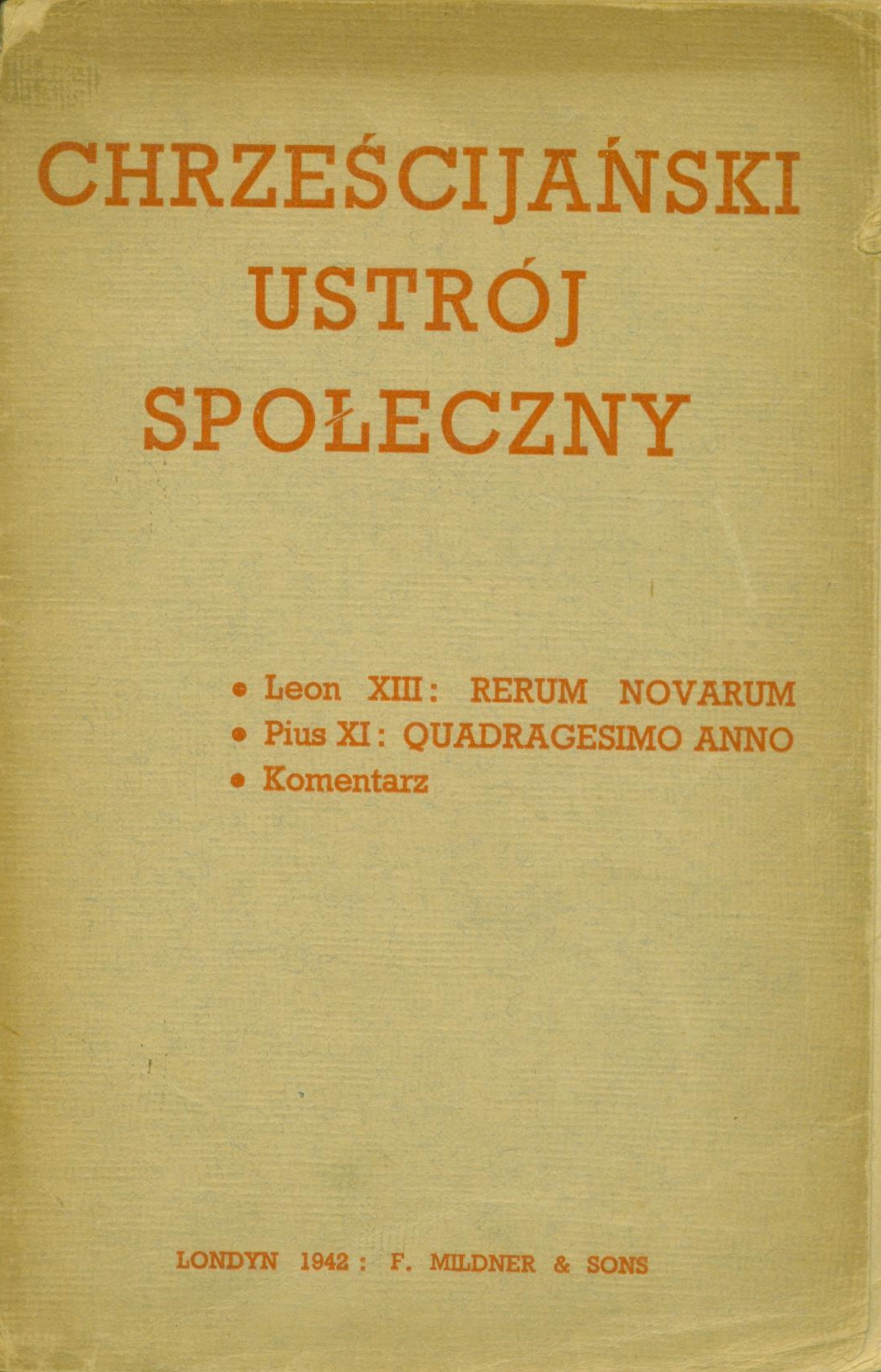 Na s. tyt. spis zawartości: Leon XIII: Rerum novarum, Pius XI: Quadragesimo anno, Komentarz.