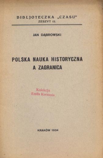Polska nauka historyczna a zagranica / Jan Dąbrowski. - Kraków : [s.n.], 1934 (Kraków : Drukarnia "Czasu"). - 16 s. ; 18 cm.
