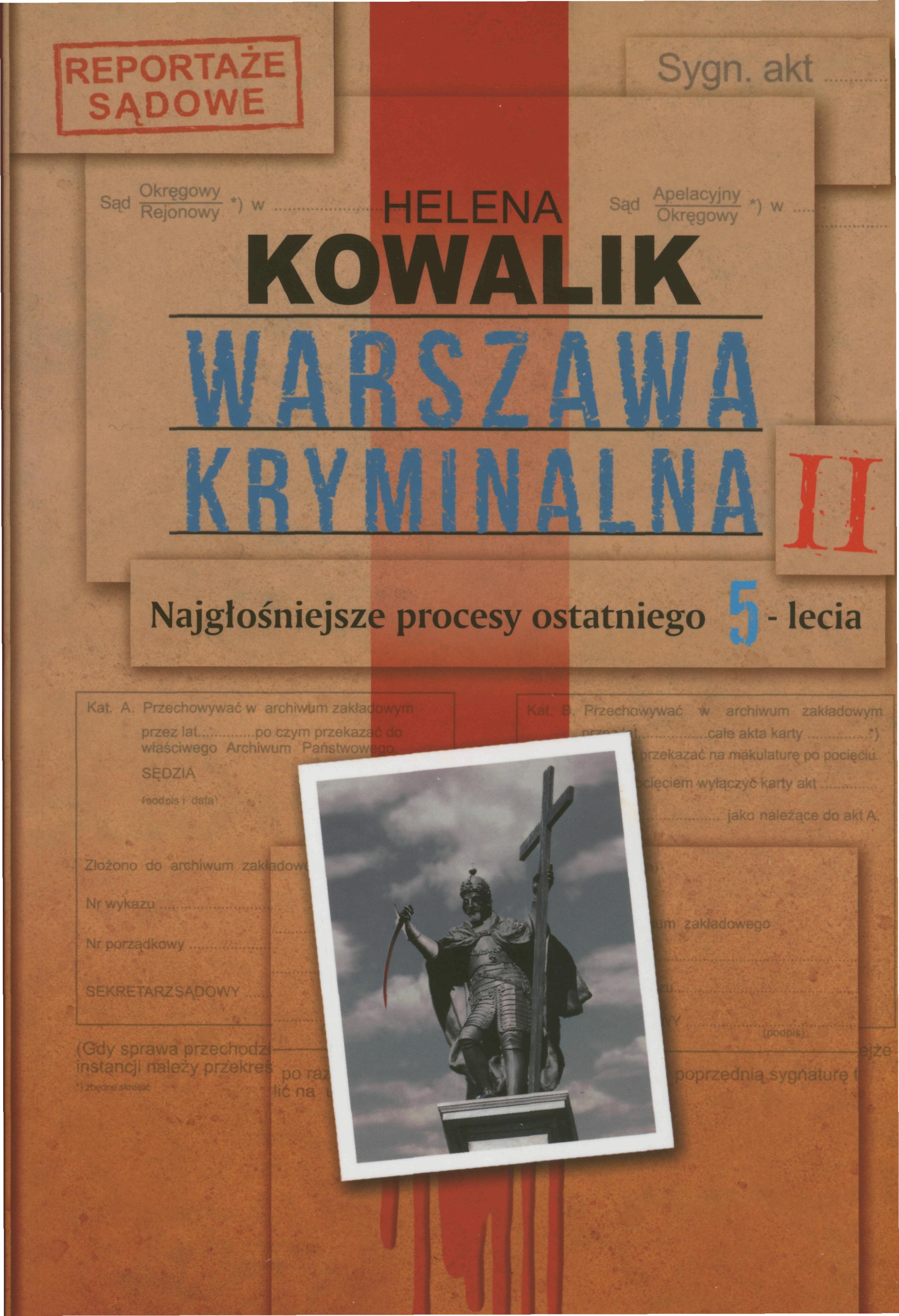 "Warszawa Kryminalna II" - drugi tom reportaży sądowych Heleny Kowalik to pitawal głośnych procesów karnych ostatnich pieciu lat, jakie toczyły się w stołecznych sądach. Autorka nadal tak dobiera tematykę spraw karnych, aby tworzyły panoramę charakterystycznych przestępstw we współczesnej Warszawie. W tomie drugim panorama głośnych medialnie przestępstw rozszerza się o kolejne nowe odsłony, m.in. przestępstwa tzw. białych kołnierzyków, czyli prominentnych urzędników, którzy decydowali o dużych inwestycjach w stolicy i ulegli (albo zostali niesłusznie posądzeni) pokusie wzięcia łapówki. Czytelnicy znajdą też w pitawalu odpowiedź na pytanie, jak to się stało, że skarb państwa poręczał ogromne kredyty na inwestycje, które nigdy nie zostały zrealizowane, a pieniądze podatników przepadły. I gdzie są winni, czy w ogóle są? Z kolei sprawy sądowe dotyczące nowego obyczaju pokazują wypaczenie pojęcia wolności słowa, bądź też niedawno sklasyfikowane prawnie sytuacje, w których dochodzi do psychicznego molestowania drugiej osoby. Jest też w "Warszawie Kryminalnej II" rozdział spraw sądowych, których by nie było, gdyby sprawcami nie targały odwieczne uczucia - miłości, a potem nienawiści. Okazuje się, że atrybutami tych emocji mogą być butelka z kwasem solnym, pistolet, czy oczernianie w Internecie. Reportaże zamyka dyskusja o tym typie przestępcy i przyczynach odwlekających się na długie lata wyroków sędzi orzekającej m.in. w sprawach "białych kołnierzyków" z adwokatem, wykładowcą prawa na wyższej uczelni.