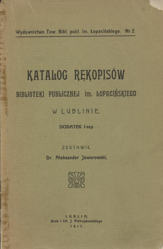 Inny tyt: Katalog rękopisów Biblioteki Publicznej im. H. Łopacińskiego w Lublinie. Cz. 2