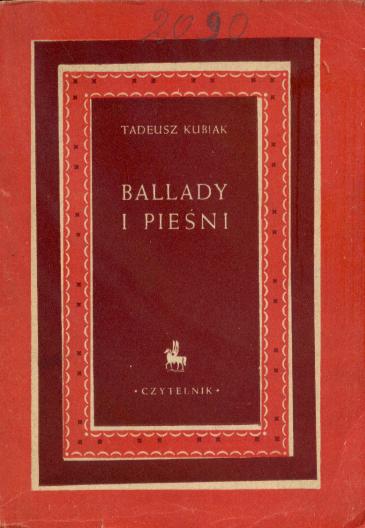 Ballady i pieśni / Tadeusz Kubiak. - Warszawa : "Czytelnik", 1950. - 67, [3] s. ; 18 cm.