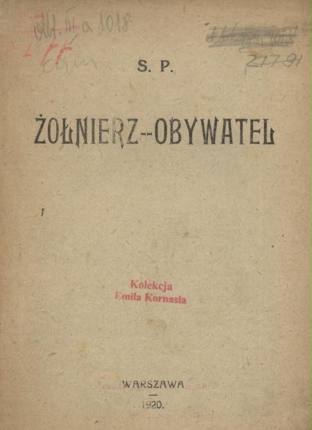 Żołnierz - obywatel / S. P. - Warszawa : [s.n.], 1920 (Warszawa : Drukarnia Współczesna). - 16 s. ; 18 cm.