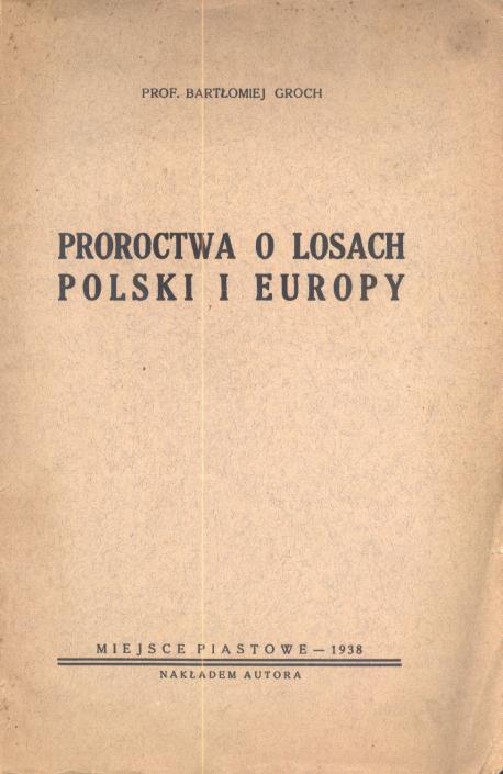 Proroctwa o losach Polski i Europy / Bartłomiej Groch. - Miejsce Piastowe : nakł autora, 1938 (Miejsce Piastowe : Druk. Tow. św. Michała Arch.). - 78, [1] s. ; 24 cm.