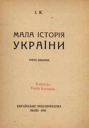 Mala istoriâ Ukrainy / I. K. - 3 vyd. - L'viv : Ukr. Vydavn., 1941. - 31, [1] s. ; 15 cm.
