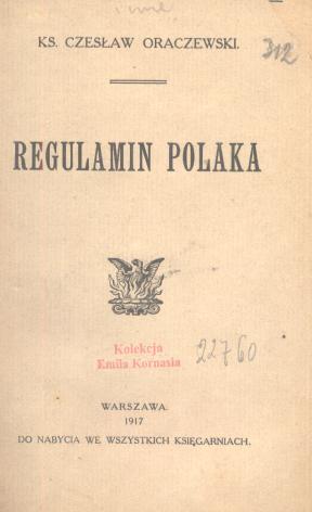 Regulamin Polaka / Czesław Oraczewski. - Warszawa : [s.n.], 1917 (Warszawa : "Jan Cotty"). - 55 s. ; 23 cm.