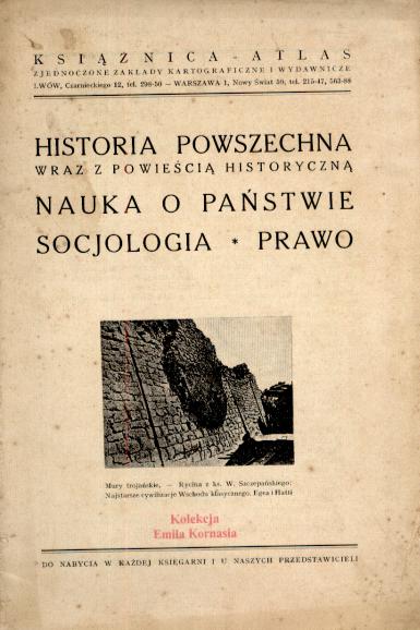 Historia powszechna wraz z powieścią historyczną : nauka o państwie, socjologia, prawo. - Lwów : Książnica-Atlas, [post 1920] (Lwów : Zakłady Graficzne S. A. Książnica-Atlas). - 31 s. : il. ; 20 cm.