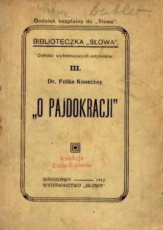 O pajdokracji / Feliks Koneczny. - Warszawa : "Słowo", 1912 (Warszawa : Drukarnia Polska) - 71 s. ; 16 cm.