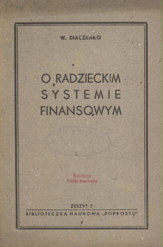 O radzieckim systemie finansowym / W. Diaczenko ; [tł. z ros. Z. O.]. - [Warszawa : s.n., 1949] (Warszawa : Drukarnia Nr 2 Spółdz. Wyd.-Ośw. "Czytelnik"). - 29, [1] s. ; 23 cm.