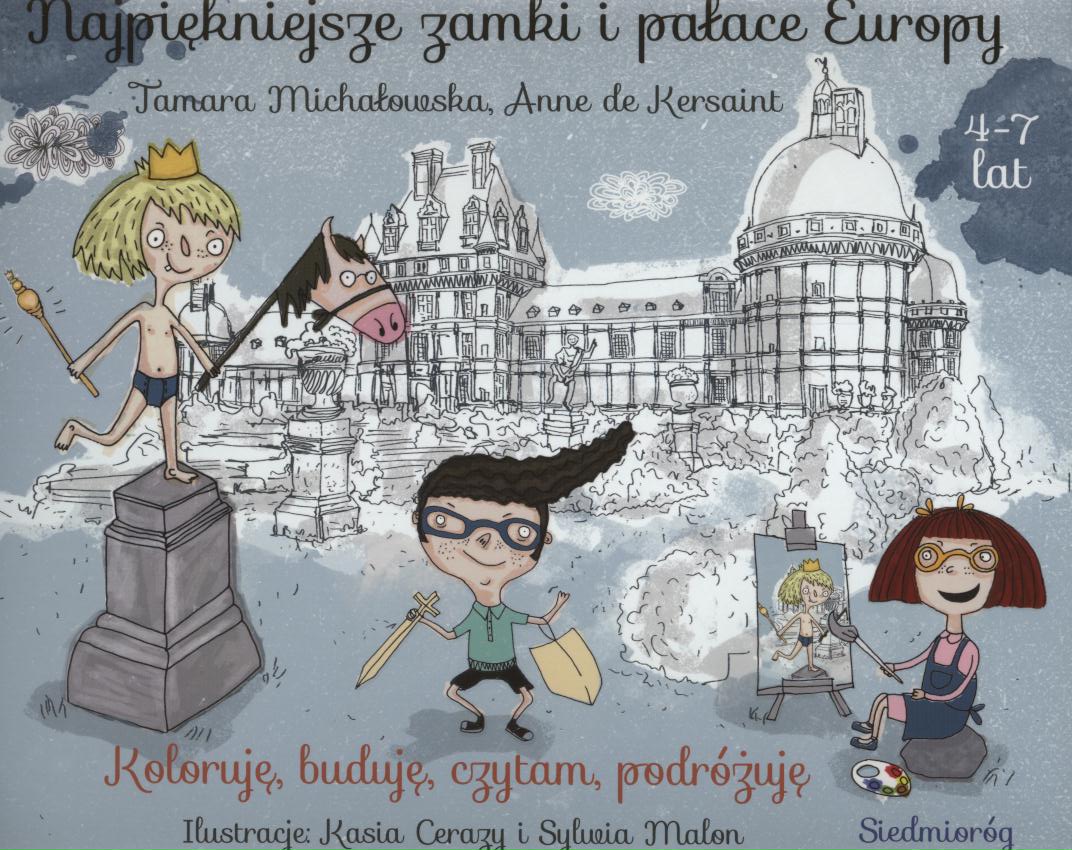 W tej pięknej książce aktywizującej mowa jest o 12 najsłynniejszych zamkach i pałacach europejskich - zarówno tych, w których mieszkali królowie, jak i tych, które budowali najznakomitsi architekci. Na rozkładówkach poświęconych danemu zamkowi znajduje się kolorowanka edukacyjna, notka o historii zamku i związana z zamkiem legenda. Kolorytu i radości całej publikacji dodają, towarzyszące przy czytaniu i kolorowaniu, trzy sympatyczne postacie: Panna Kolorowanka, Henryczek Historyczek i Jerzy Bajkierzy. Ukrywają się, robią żarty, wypowiadają się w dymkach, niekiedy dla zabawy, najczęściej z przesłaniem edukacyjnym. Do środka książki wpięta jest wycinanka z zamkiem do złożenia i pokolorowania.