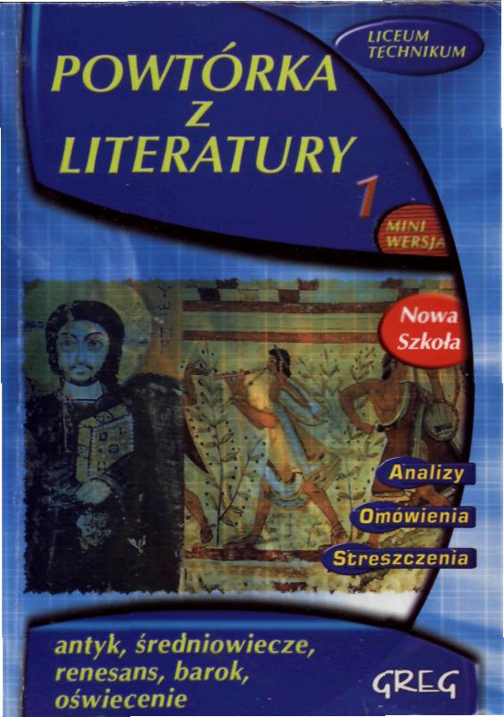 "Powtórka z literatury" to opracowanie wierszy i lektur szkolnych, zawierające bogate w szczegóły streszczenia, rozbudowaną problematykę, wyczerpujące charakterystyki postaci z cytatami, opisami, omówione problemy gatunku, narracji, kompozycji. Ilość materiałów tu zebranych gwarantuje dobre oceny i wiedzę potrzebną do sprawdzianu, egzaminu gimnazjalnego, matury. Prostota i rzeczowość przekazu, bardzo konkretne informacje, bogactwo treści pozwalają polecić tę serię wszystkim, którzy poszukują skutecznej pomocy. Omówienia można łatwo zrozumieć i przyswoić, a w razie konieczności po prostu zapamiętać, czemu służy też system wytłuszczeń w książce. atrakcją są też niewątpliwie zestawienia tabelaryczne, które porządkują wiedzę uczniowską. Dzięki tym publikacjom przygotowanie do lekcji jest bardzo proste i nie wymaga dużej ilości czasu.