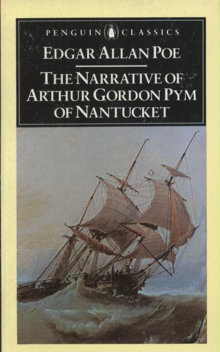 The Narrative of Arthur Gordon Pym of Nantucket (1838) is the only complete novel written by American writer Edgar Allan Poe. The work relates the tale of the young Arthur Gordon Pym, who stows away aboard a whaling ship called the Grampus. Various adventures and misadventures befall Pym, including shipwreck, mutiny, and cannibalism, before he is saved by the crew of the Jane Guy. Aboard this vessel, Pym and a sailor named Dirk Peters continue their adventures farther south. Docking on land, they encounter hostile black-skinned natives before escaping back to the ocean. The novel ends abruptly as Pym and Peters continue toward the South Pole.