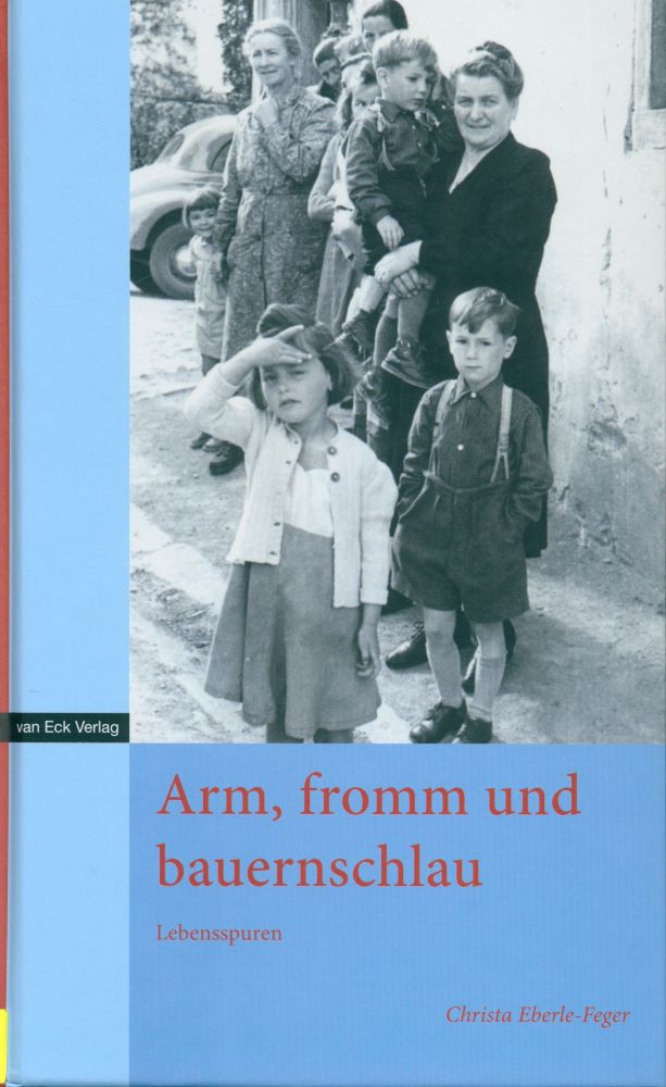 Christa Eberle-Feger lässt in ihrem neuen Buch alte Menschen zu Wort kommen, die mit dem Erfahrungsschatz früherer Zeiten im Hintergrund aus ihrem Leben erzählen: „Arm, fromm und bauernschlau“ ist eine anschauliche Sozialgeschichte, teilweise ergänzt mit heiteren, ernsten oder kuriosen Geschichten, mit Sprüchen und Anekdoten, die den Zeitgeist und das Lebensgefühl voriger Generationen speziell gut erahnen lassen.