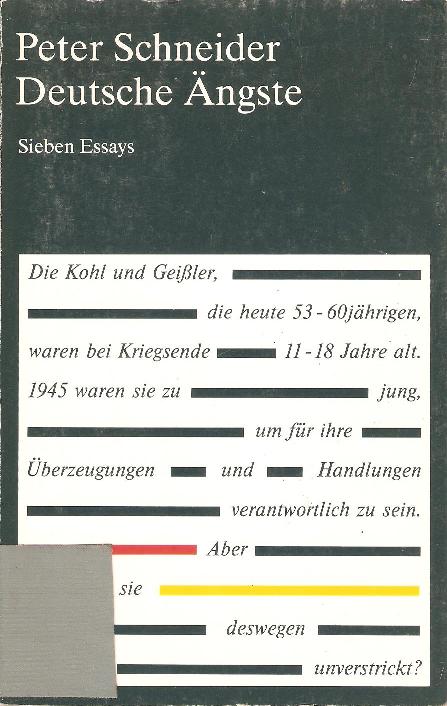 Deutsche Ängste : 7 Essays / Peter Schneider. - Darmstadt : Luchterhand, 1988. - 120, [1] s. ; 18 cm.