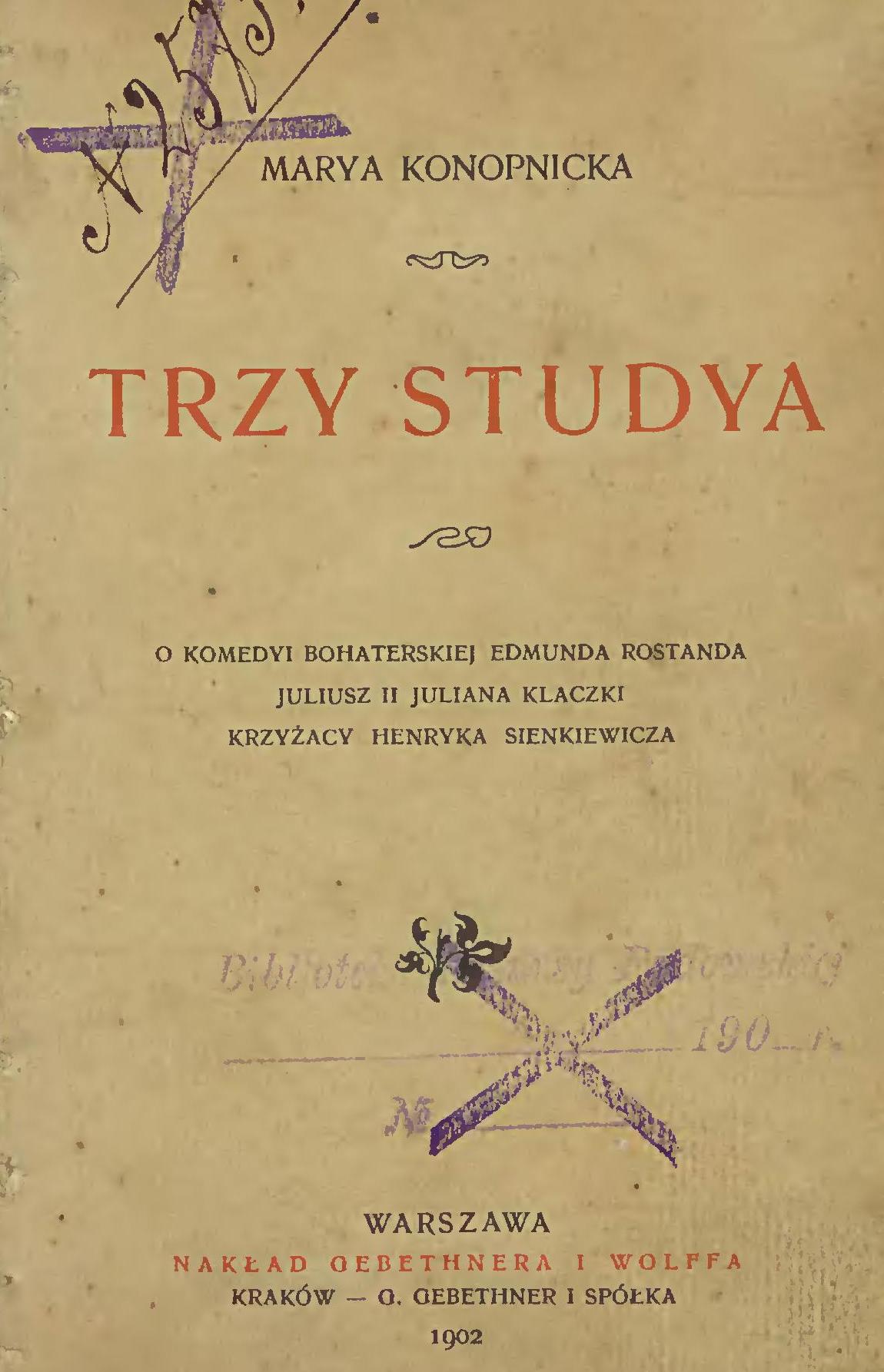 Zawiera: O komedyi bohaterskiej Edmuna Rostanda ; Juliusz II Juliana Klaczki ; Krzyżacy Henryka Sienkiewicza.