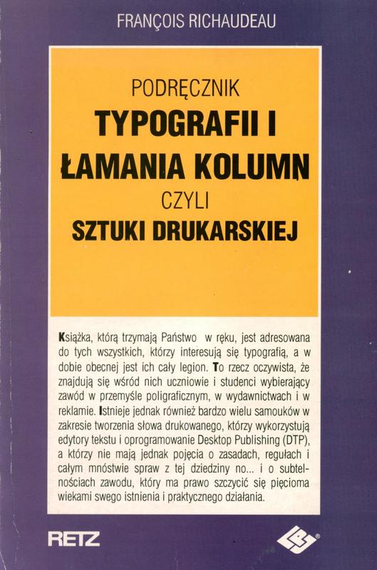 Podręcznik zawiera: podstawowe i konieczne informacje z zakresu praktyki drukarskiej, wiadomości o krojach pisma, o łamaniu, o typografii elementów wzbogacających tekst zasadniczy.