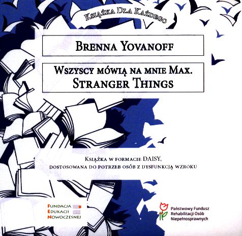 Wszyscy mówią na mnie Max [Dokument dźwiękowy] / Brenna Yovanoff ; [przekład: Marek Cieślik]. - Warszawa : Fundacja Edukacji Nowoczesnej, 2020. - 1 płyta audio (CD) (5 godz. 36 min) : zapis cyfrowy, stereo. ; 12 cm.
