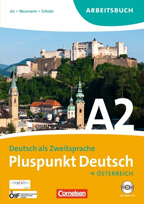 Pluspunkt Deutsch. A2 : Österreich : Deutsch als Zweitsprache : Arbeitsbuchbuch / Friederike Jin, Juta Neumann und Joachim Schote. - Berlin : Cornelsen, 2014. - 186 stron : ilustracje kolorowe ; 30 cm + 2 Audio-CD + klucz( 31 stron, 29 cm).