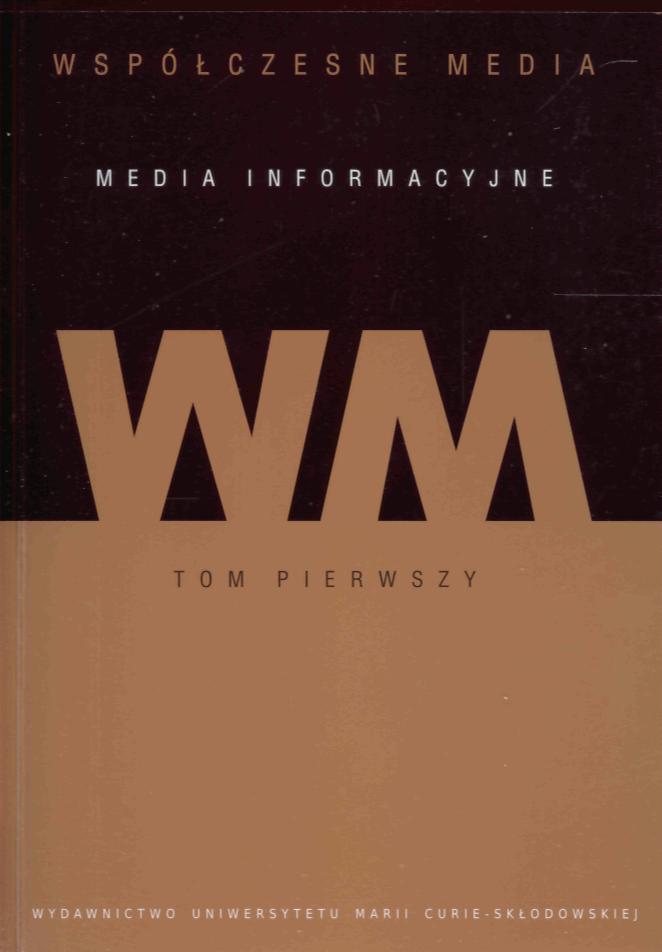 "Książka "Współczesne media : media informacyjne" to już siódma publikacja z serii Współczesne media, która pod naszą redakcją jest wydawana od 2009 roku przez Wydawnictwo UMCS. Tym razem Czytelnikowi zainteresowanemu teorią i praktyką mediów chciałybyśmy zaproponować artykuły dotyczące zagadnienia informacyjności przekazów medialnych, z zastrzeżeniem, że zawarte w tytule wyrażenie media informacyjne nie ma charakteru objaśniającego. Traktujemy je jako hasło wywoławcze w dyskusji dotyczącej realizacji przez media funkcji informacyjnej." (ze wstępu)